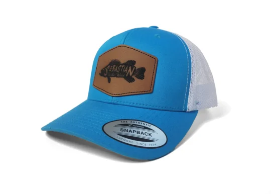 The Sebastian in the Wild logo trucker hat features a laser engraved leather logo patch. Perfect for any adventure out on the water or in the woods.